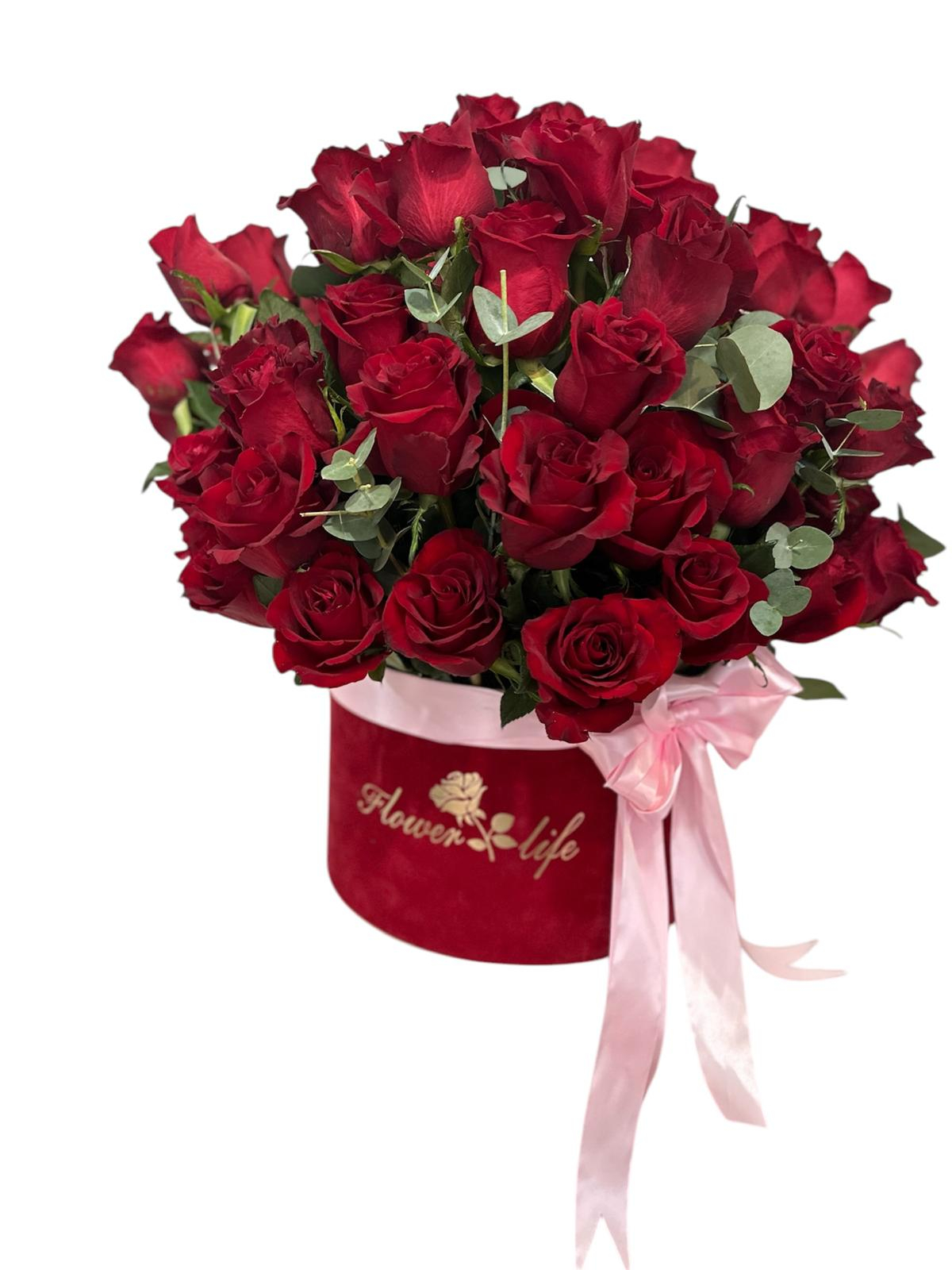 Dispuși armonios într-o cutie sofisticată, îmbrăcată în catifea fină, trandafirii roșii exprimă pasiune, romantism și devotament. Cutia de lux adaugă un plus de rafinament, transformând acest buchet într-un cadou memorabil, ideal pentru aniversări, cereri în căsătorie, Valentine’s Day sau alte ocazii deosebite.