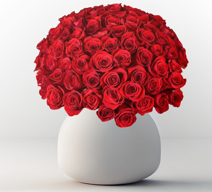 Încântă-ți simțurile cu acest buchet impresionant format din 101 trandafiri roșii de cea mai bună calitate. Fiecare floare este aleasă cu grijă pentru a asigura prospețimea și frumusețea sa.
